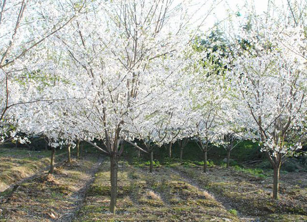 日本早櫻樹姿灑脫開展,花枝繁茂,花開滿樹,花大艷麗,盛開時如玉樹瓊花,如云似霞,堆云疊雪,甚是壯觀,是優良的園林觀賞植物。可大片栽植造成”花海”景觀,可三五成叢點綴于綠地形成錦團,也可孤植形成”萬綠叢中一點紅”之畫意。因此人們常將它種植在建筑物前、草地旁、山坡上、水池邊。夏季日本早櫻樹枝葉繁茂,綠蔭如蓋,作為次干車行道或人行道上的行道樹也十分美麗得體。