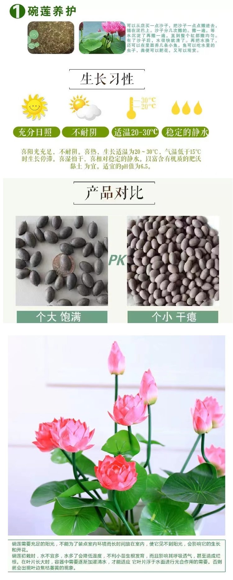 選擇健康、成熟的蓮花種子。成熟的種子會呈黑色或深褐色,并且具有完整的種皮和胚芽。準(zhǔn)備好種子后,將其浸泡在清水中,大概2-3天,每天更換水,直到種子表面的外殼軟化。