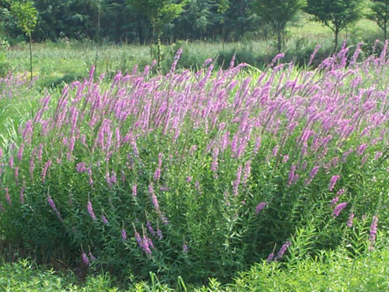 或是成片栽植在淺水的岸邊、池塘、環(huán)城河等地方,與荷花、睡蓮、菖蒲等水生植物相間栽植,具有非常高的觀賞價值,千屈菜也有盆栽擺放庭院中觀賞,也可切花用。